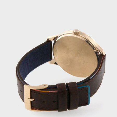 上品で美しい発色のバーガンディダイヤルとゴールドケースは相性が良く、デザインをより引き立ててくれています。ケースバックにはポール・スミス手描きのドローイングでメッセージが刻印されているのもポイントです。ミニマルなデザインの中に、ポール・スミスの遊び心と時計へのこだわりが詰め込まれています。