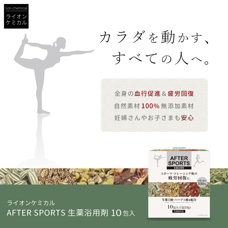 生薬浴用剤は、運動後のリカバリーや疲労回復をサポートするために開発された入浴剤です。自然由来の5種の生薬と1種のハーブの力を活かした配合です。手軽に健康薬草湯を楽しむことができ、疲れた筋肉や関節を温め、血行を促進する効果が期待できます。これにより、運動による疲労を効果的に回復させることができます。